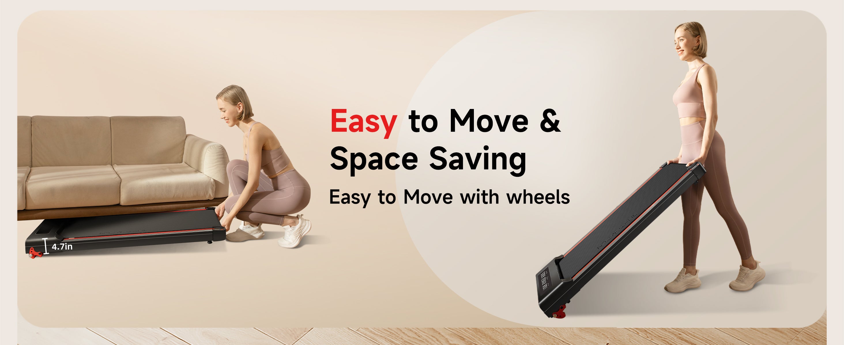 Walking Treadmill With Wheel: To provide users with a better experience, our walking treadmill under desk products have been assembled when they arrive. They can be used directly. We have installed two wheels on the walking pad, you can store and move the floor treadmill more easily.