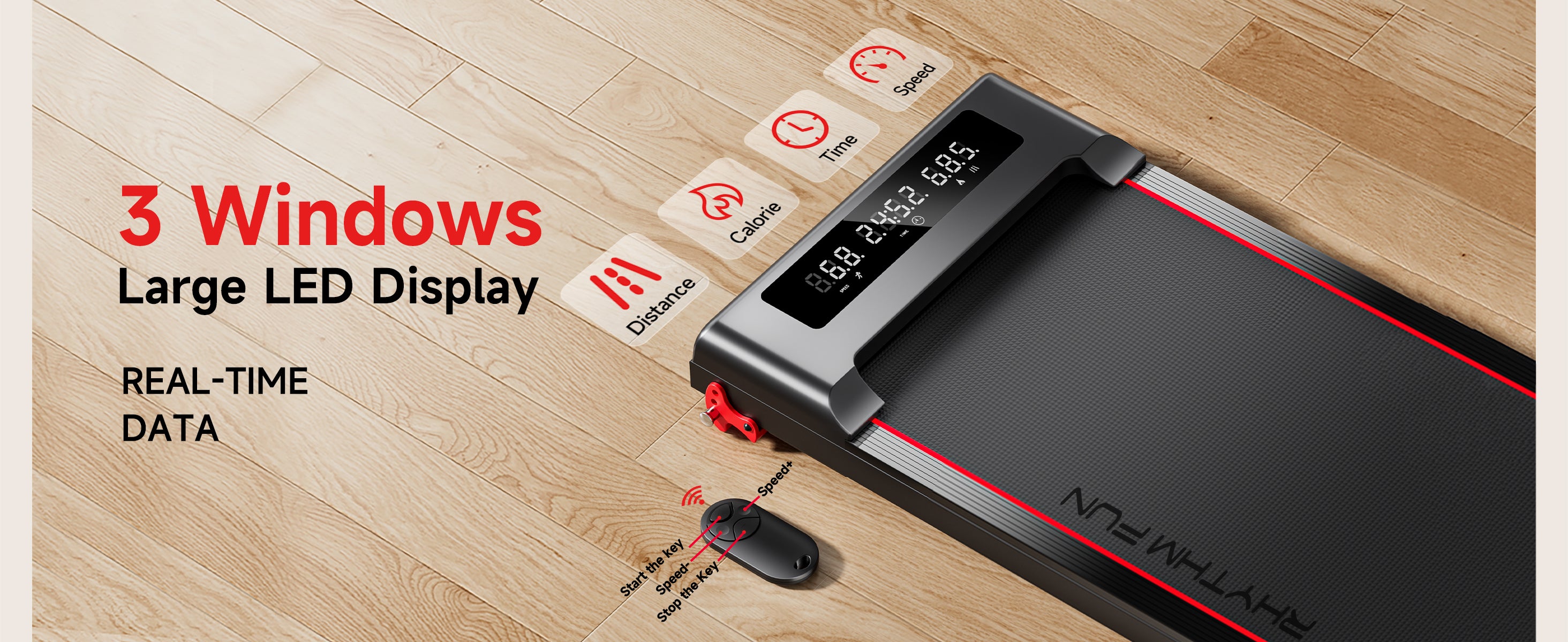 2 in 1 Walking Treadmill: Our under desk treadmill is committed to providing users with a safer and more scientific exercise experience, the speed range of the walking treadmill is 0.5-3.8 mph(0.8-6km/h); There will be digital displays of speed, time, distance, and calories in the LED display of the walking pad to help you better grasp the state of exercise.