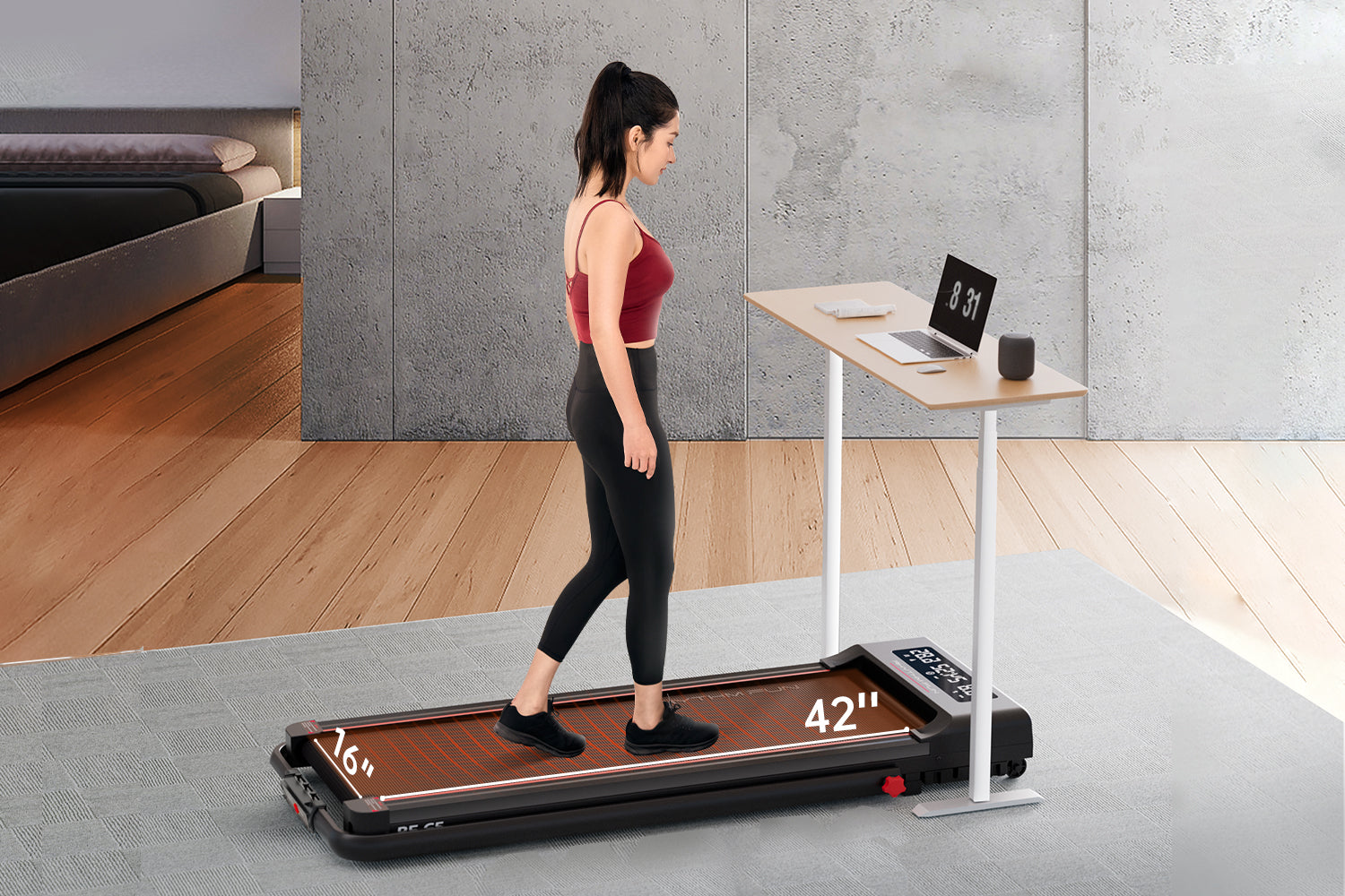 We are committed to providing users with safer and more secure products; This walking pad treadmill under desk product adopts a 5-layer anti-slip running belt design, which can enhance the safety of users during exercise.