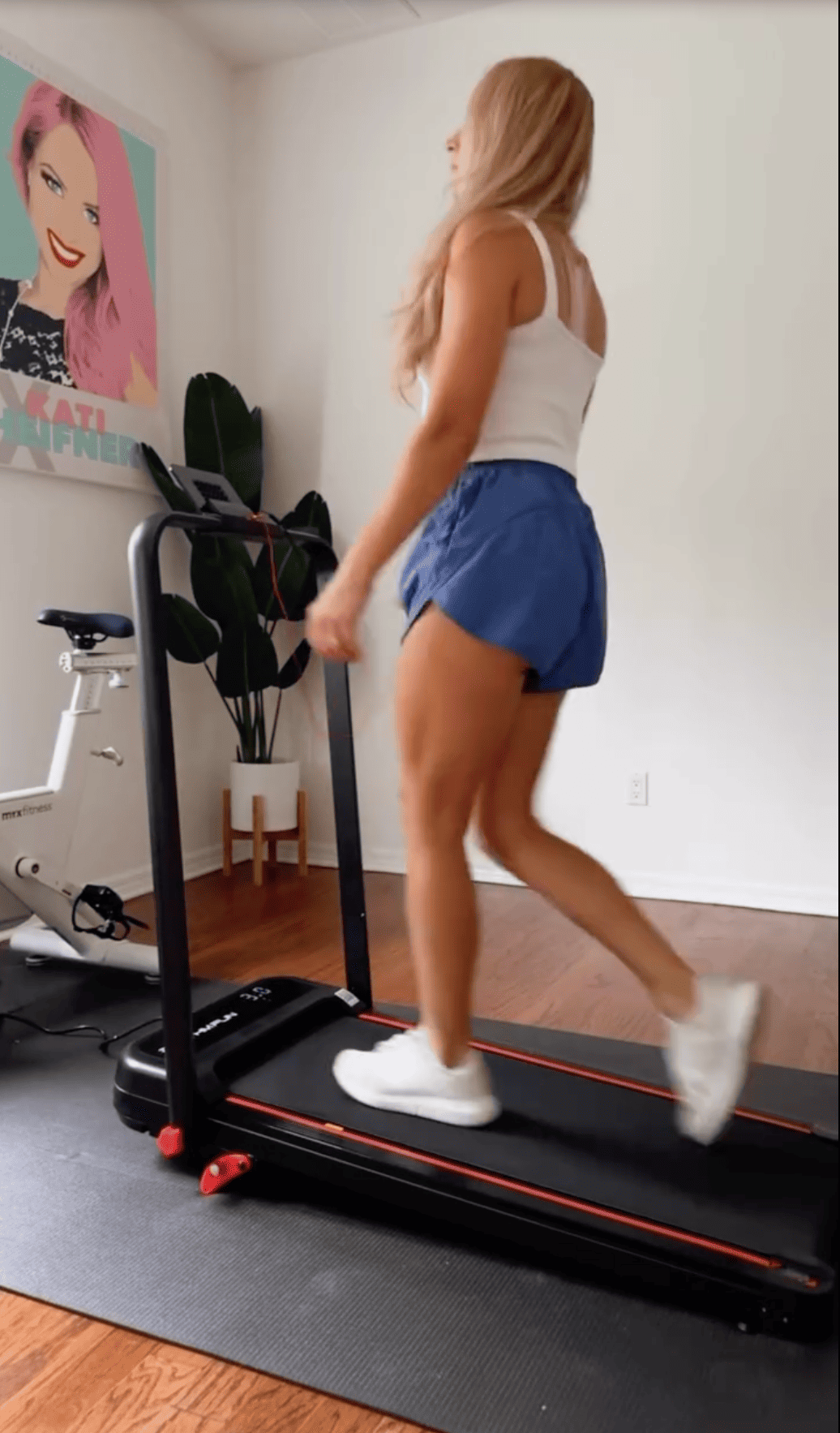 Powerful But Quiet: Rhythm Fun treadmill is equipped with a powerful 2.5HP low-noise motor.Which can withstand loads up to 300 lbs. The portable walking treadmill enables speeds ranging from 0.8 to 8.0 km/h (0.5-5 mp/h). Manual Incline adjustment can meet the fat burning effect of 50% higher than traditional treadmills.